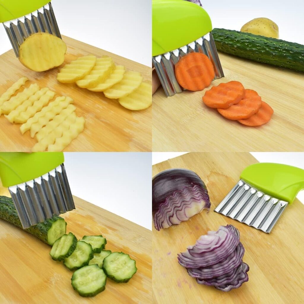 Perfect for cutting potatoes, carrots, cucumbers, fruits, vegetables, cheese, butter, and waffles, helping you create attractive food presentations.